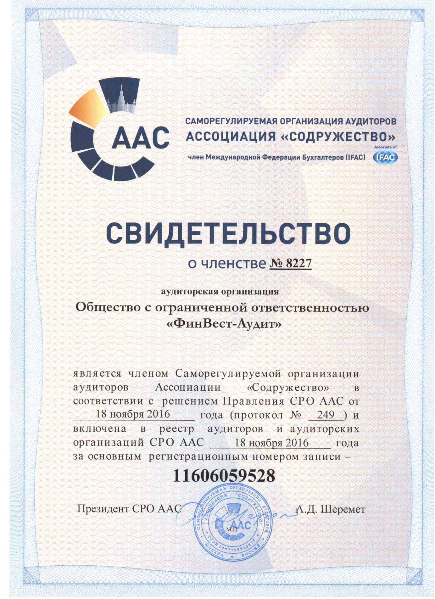 Свидетельство о членстве в саморегулируемой ассоциации аудиторов